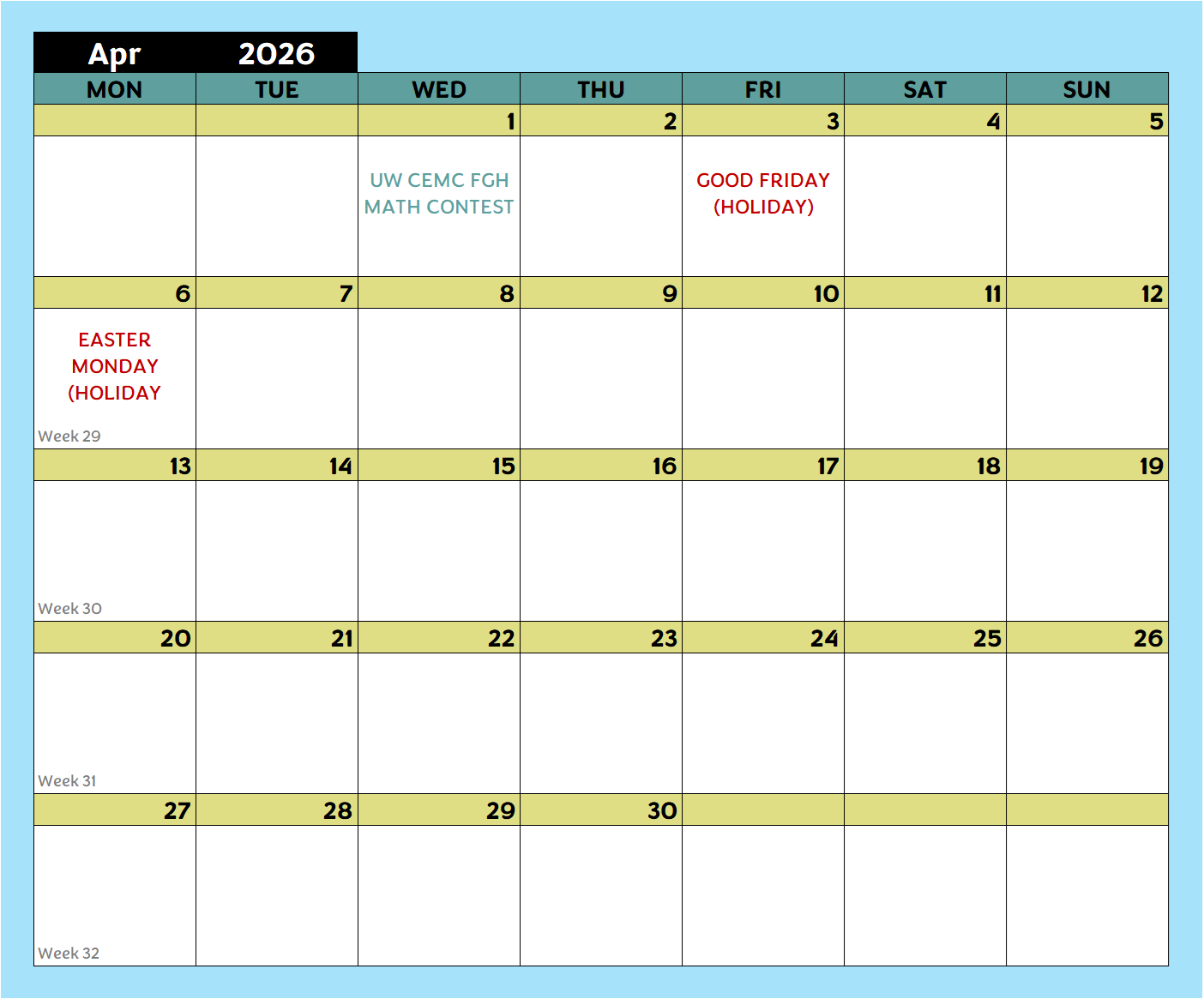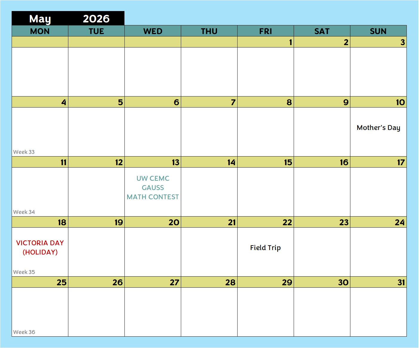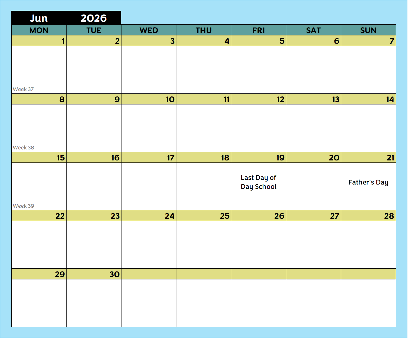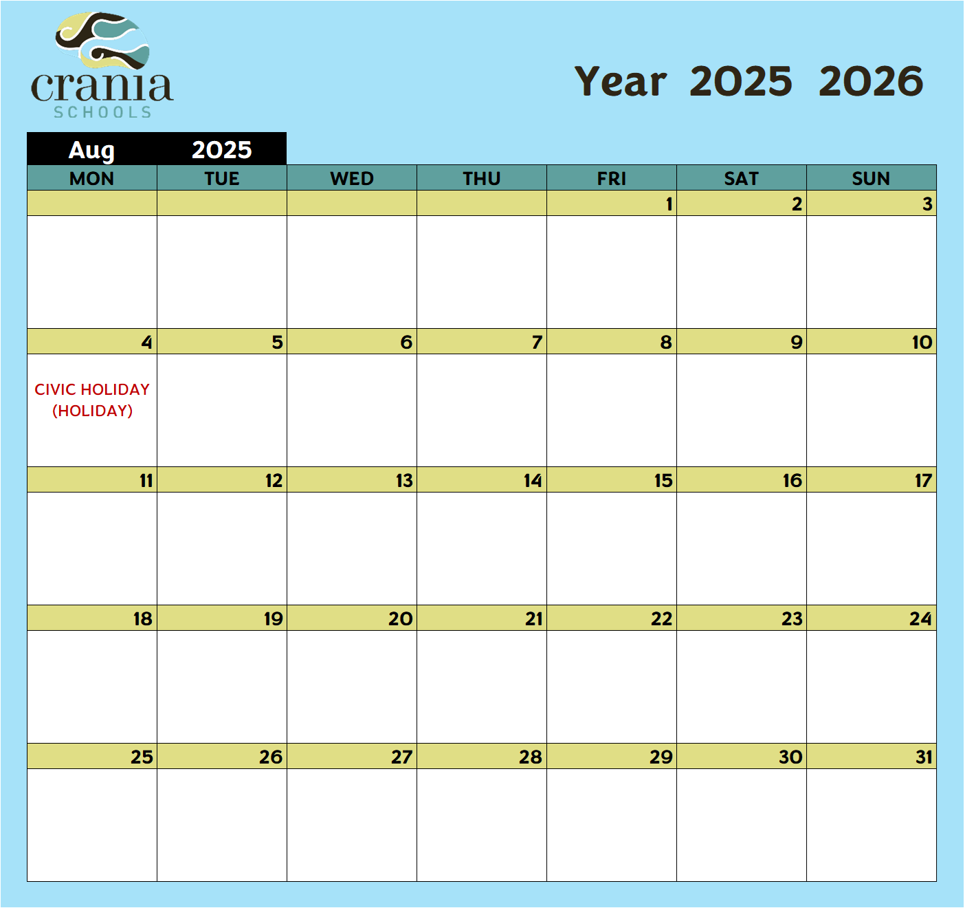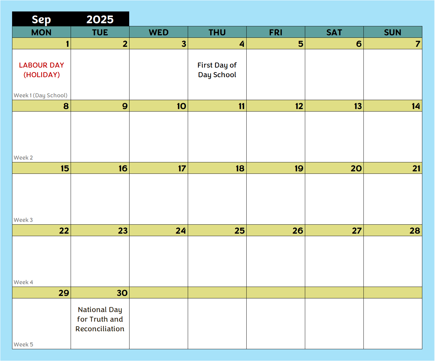 Day School Calendar