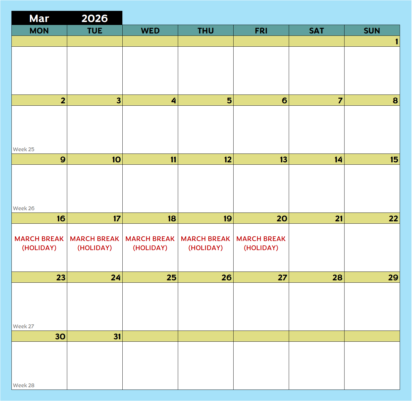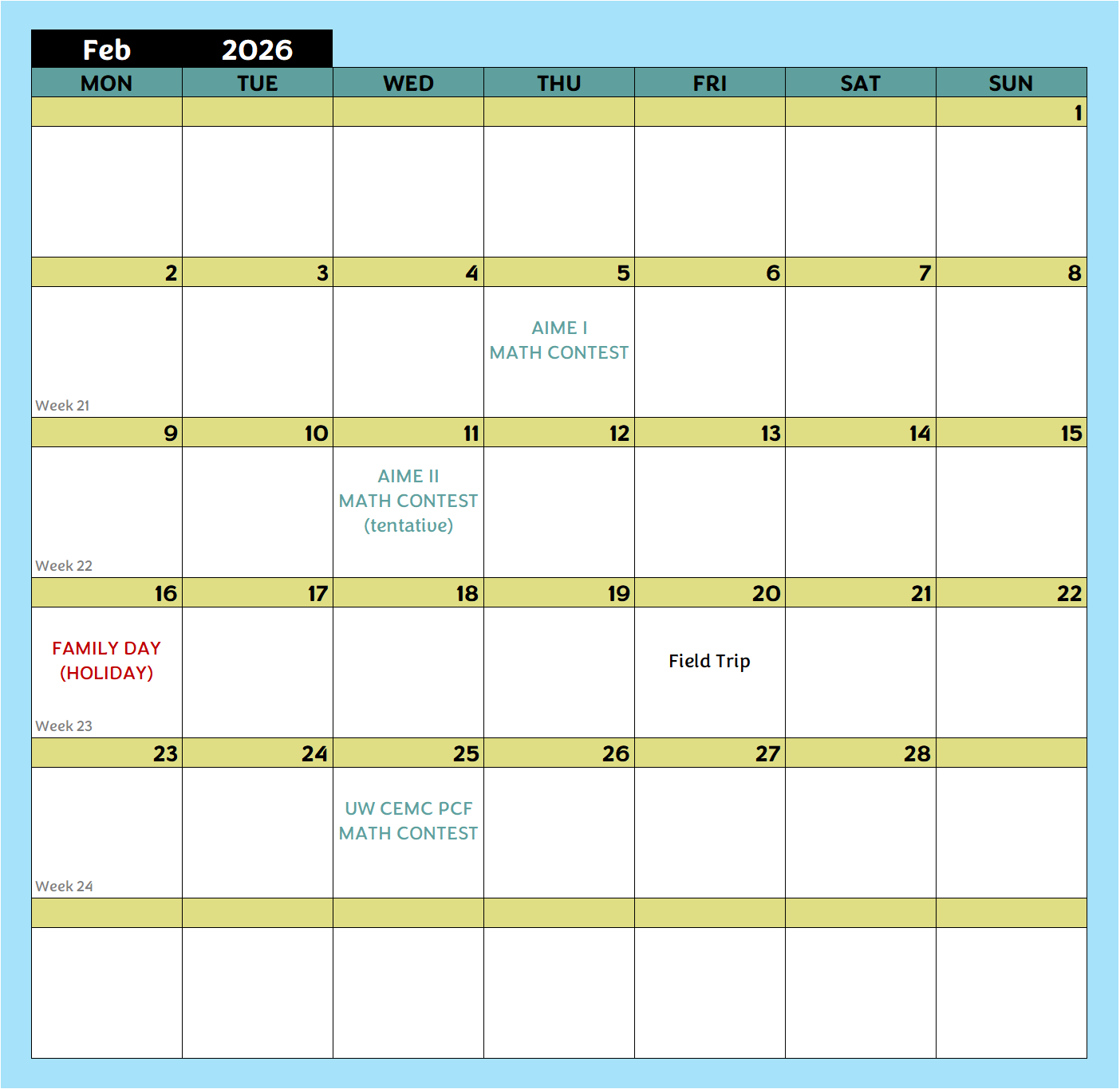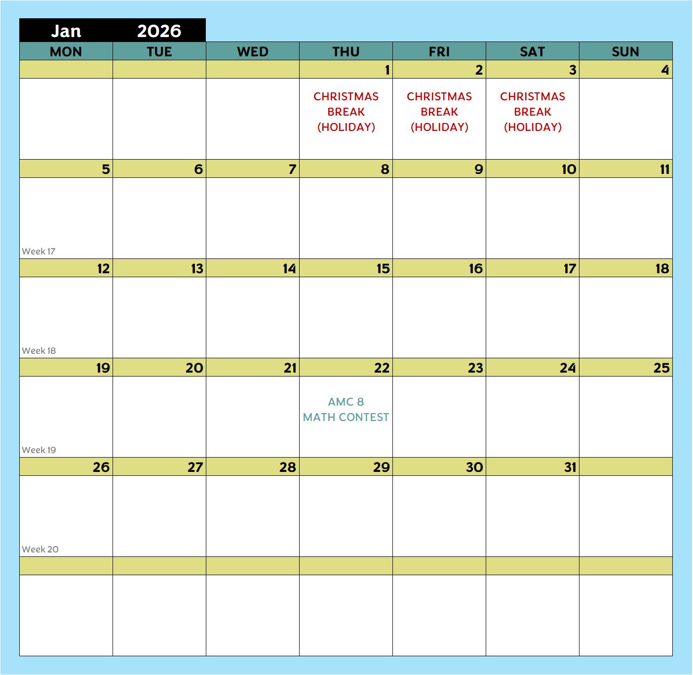 See when lessons and breaks are scheduled. Remember to bookmark this page so it’s always handy!