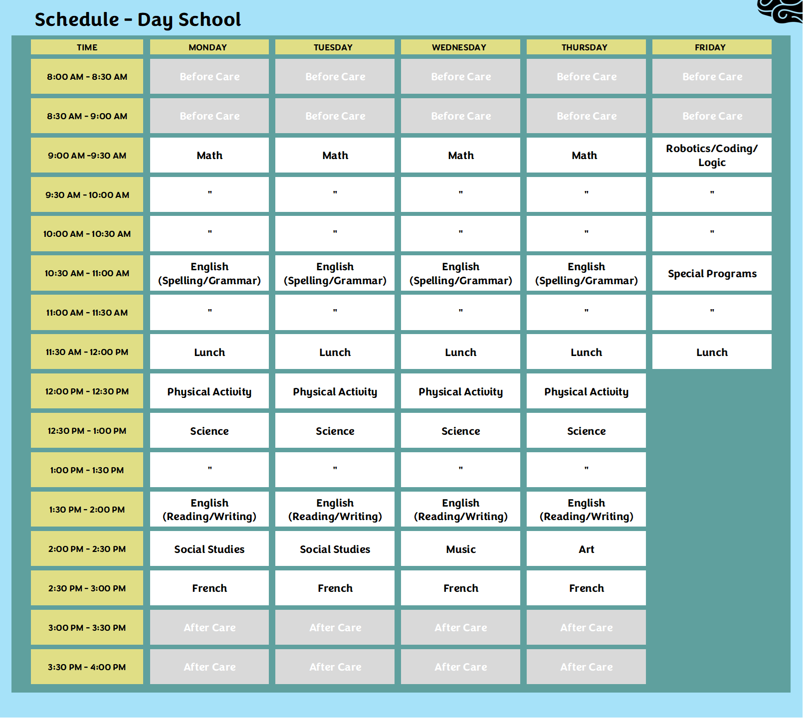 Schedule – Day School